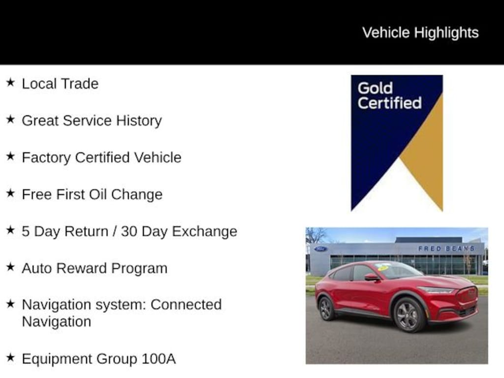 2021 Ford Mustang Mach-E Select Dual Electric Motor Single-Speed Automatic 4D Sport Utility Rapid Red Metallic Tinted Clearcoat Local Trade, Great Service History, Factory Certified Vehicle, Free First Oil Change, 5 Day Return / 30 Day Exchange, Auto Reward Program, Mustang Mach-E Select, 4D Sport Utility, Dual Electric Motor, Single-Speed Automatic, AWD, Rapid Red Metallic Tinted Clearcoat, Black Onyx Leatherette, 360 Degree Camera, 6-Way Manual Front Passenger Seat, BlueCruise Hands-Free Driving, Cargo Area Cover, Cargo Area Protector, Comfort/Technology Package, Equipment Group 100A, Ford Co-Pilot360 Active 2.0, Front & Rear Floor Liners, Hands-Free Foot-Activated Liftgate, Heated Front Row Seats, Heated Steering Wheel, Interior Protection Package (Pre-Installed), Memory Driver's Seat & Side-View Mirrors, Navigation system: Connected Navigation. 100/86 City/Highway MPG