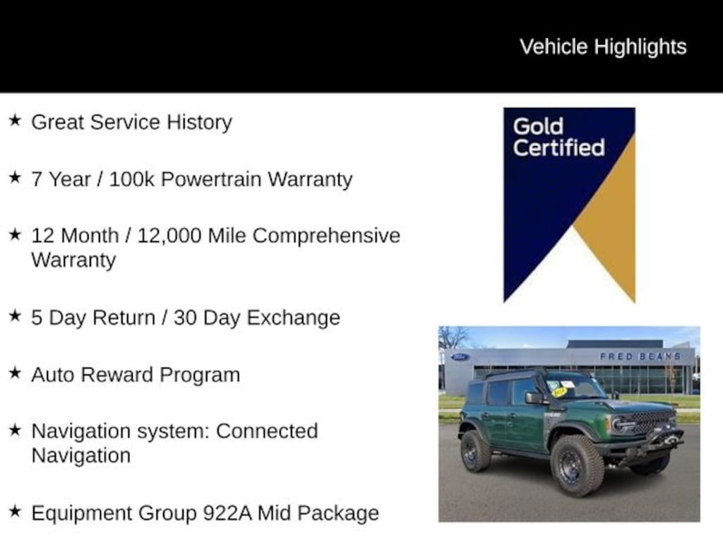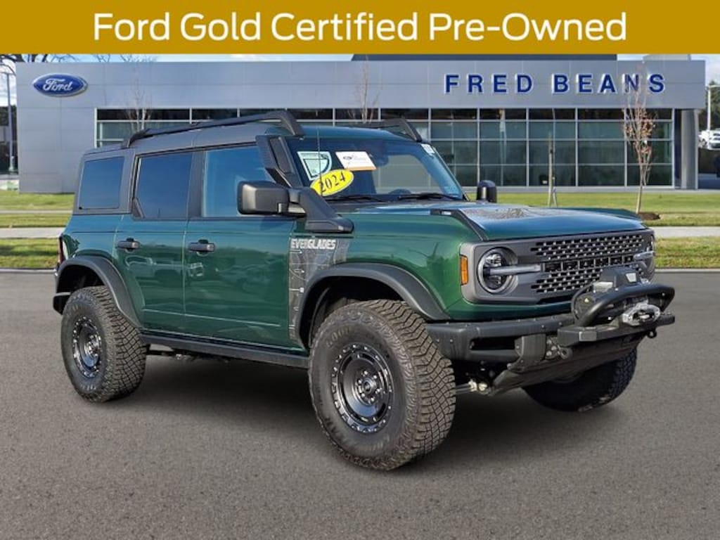 2024 Ford Bronco Everglades 2.3L EcoBoost I-4 10-Speed Automatic 4D Sport Utility Green Metallic Great Service History, 7 Year / 100k Powertrain Warranty, 12 Month / 12,000 Mile Comprehensive Warranty, 5 Day Return / 30 Day Exchange, Auto Reward Program, Bronco Everglades, 4D Sport Utility, 2.3L EcoBoost I-4, 10-Speed Automatic, 4WD, Green Metallic, Dark Gray W/Black Onyx Vinyl, Equipment Group 922A Mid Package, Navigation system: Connected Navigation.