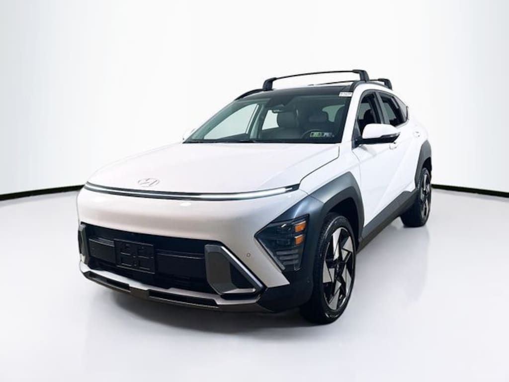 2025 Hyundai Kona Limited I4 8-Speed Automatic AWD 4D Sport Utility Atlas White Remainder of Factory Warranty, Free First Oil Change, 5 Day Return / 30 Day Exchange, Auto Reward Program, 5 Year / 60,000 miles comprehensive OISD, 8 Speakers, ABS brakes, Apple CarPlay & Android Auto, Automatic temperature control, Brake assist, Dual front side impact airbags, Electronic Stability Control, Emergency communication system: Bluelink+, Four wheel independent suspension, Front anti-roll bar, Front dual zone A/C, Fully automatic headlights, Garage door transmitter: HomeLink, H-Tex Leatherette Seat Trim, Heated & Ventilated Front Bucket Seats, Heated door mirrors, Heated steering wheel, Low tire pressure warning, Navigation System, Occupant sensing airbag, Option Group 01, Outside temperature display, Overhead airbag, Power door mirrors, Power driver seat, Power Liftgate, Power moonroof, Power steering, Power windows, Radio: AM/FM/HD Radio/SiriusXM w/Navigation, Rear anti-roll bar, Rear window defroster, Remote keyless entry, Security system, Speed control, Speed-sensing steering, Steering wheel mounted audio controls, Telescoping steering wheel, Tilt steering wheel, Traction control, Turn signal indicator mirrors, Wheels: 19" x 7.5J Glossy Black Alloy.