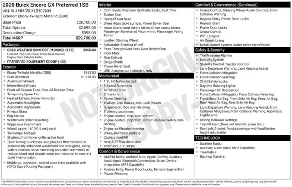 Don't miss your chance to experience the exceptional quality and refined elegance of the 2020 Buick Encore GX Preferred. Schedule a test drive today and discover why this SUV is the perfect choice for your next adventure.