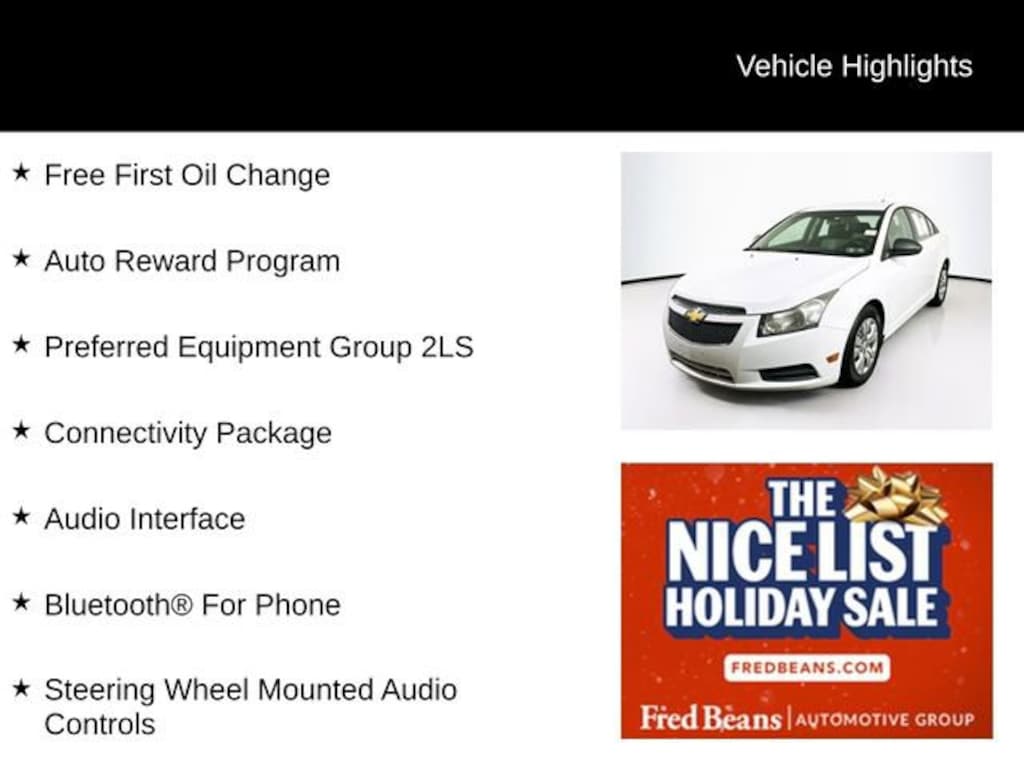 2012 Chevrolet Cruze LS ECOTEC 1.8L I4 DOHC VVT 6-Speed Automatic Electronic with Overdrive FWD 4D Sedan Summit White Free First Oil Change, Auto Reward Program, Audio Interface, Bluetooth® For Phone, Connectivity Package, Preferred Equipment Group 2LS, Steering Wheel Mounted Audio Controls.