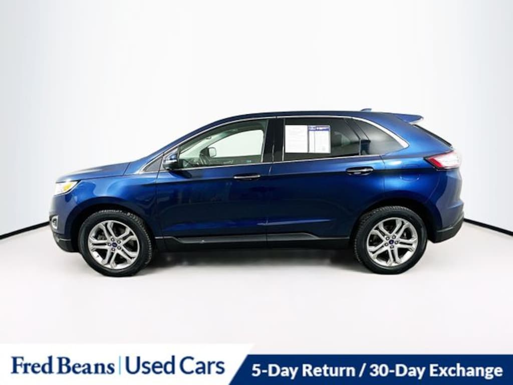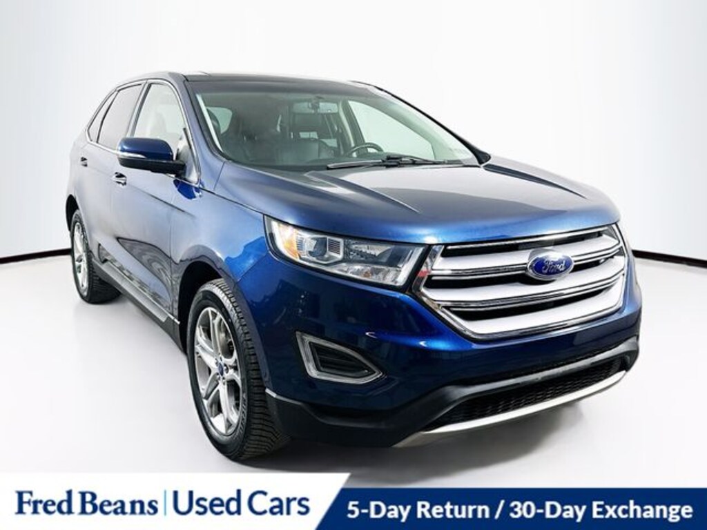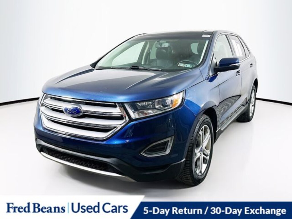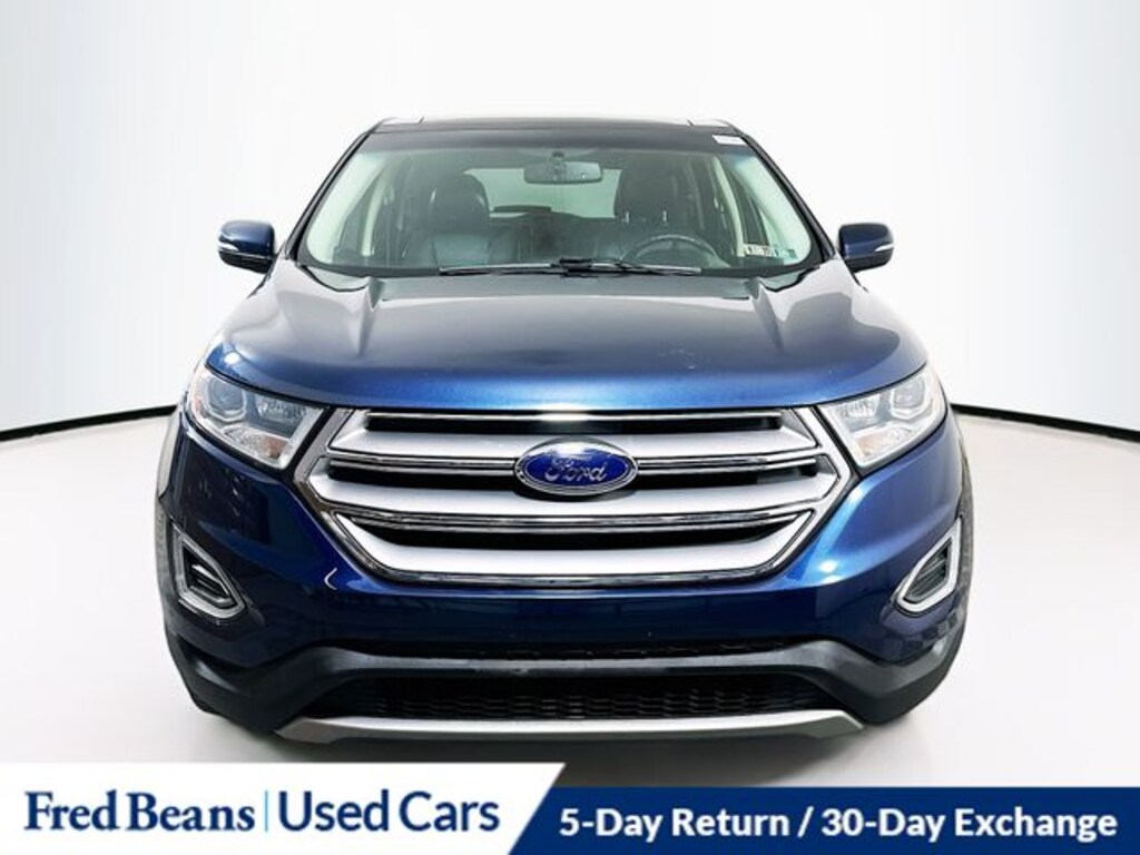 2017 Ford Edge Titanium EcoBoost 2.0L I4 GTDi DOHC Turbocharged VCT 6-Speed Automatic AWD 4D Sport Utility Blue Local Trade, Great Service History, Non Smoker, Triton Classic 3 month 4,000 mile Limited Comprehensive Warranty, AWD, Auto-dimming Rear-View mirror, BLIS Blind Spot Information System, Exterior Parking Camera Rear, Fully automatic headlights, Heated front seats, Heated Rear-Seats, Heated Steering Wheel, Panoramic Vista Roof, Power driver seat, Power Liftgate, Rear Parking Sensors.