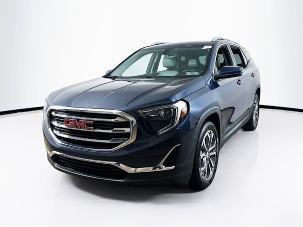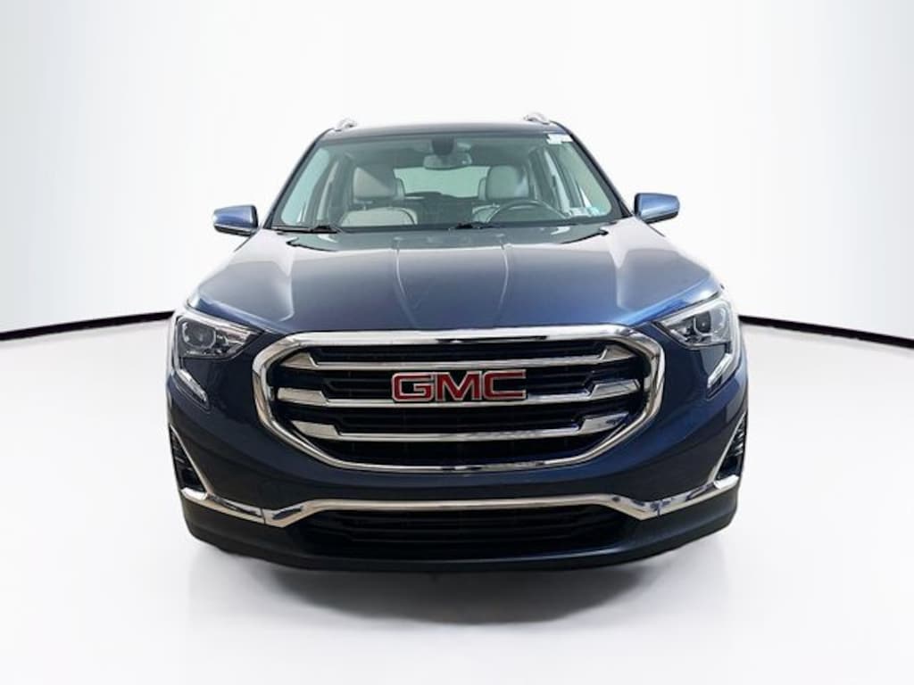 2018 GMC Terrain SLT 2.0L Turbocharged 9-Speed Automatic AWD 4D Sport Utility Blue Steel Metallic AWD, 2 USB Data Ports, 2 USB Data Ports w/Auxiliary Input Jack, 4-Way Manual Front Passenger Seat, 4-Wheel Antilock 4-Wheel Disc Brakes, 4-Wheel Disc Brakes, 6 Speakers, 6-Speaker Audio System Feature, 8-Way Power Driver Seat Adjuster, ABS brakes, Air Conditioning, Alloy wheels, AM/FM radio: SiriusXM, Apple CarPlay/Android Auto, Auto-dimming door mirrors, Auto-dimming Rear-View mirror, Automatic temperature control, Bluetooth® For Phone, Brake assist, Bumpers: body-color, Compass, Delay-off headlights, Driver & Front Passenger Heated Seats, Driver door bin, Driver vanity mirror, Dual Exhaust w/Bright Tips, Dual front impact airbags, Dual front side impact airbags, Electronic Stability Control, Emergency communication system: OnStar Guidance, Exterior Parking Camera Rear, Four wheel independent suspension, Front anti-roll bar, Front Bucket Seats, Front Center Armrest, Front dual zone A/C, Front fog lights, Front reading lights, Fully automatic headlights, Heated door mirrors, Heated front seats, High-Intensity Discharge Headlights, Illuminated entry, Low tire pressure warning, Occupant sensing airbag, Outside temperature display, Overhead airbag, Overhead console, Panic alarm, Passenger door bin, Passenger vanity mirror, Perforated Leather-Appointed Seat Trim, Power door mirrors, Power Driver Lumbar Control, Power driver seat, Power steering, Power windows, Preferred Equipment Group 4SA, Radio data system, Radio: GMC Infotainment Audio System w/8" Display, Rear anti-roll bar, Rear seat center armrest, Rear window defroster, Rear window wiper, Remote keyless entry, Roof Rack Cross Rails (LPO), Roof rack: rails only, SD Card Reader, Security system, SiriusXM Satellite Radio, Speed control, Speed-sensing steering, Split folding rear seat, Spoiler, Steering wheel mounted audio controls, Tachometer, Telescoping steering wheel, Tilt steering wheel, Traction control, Trip computer, Turn signal indicator mirrors, Variably intermittent wipers, Wheels: 18" x 7" Machined Aluminum w/Gray Accents, Wheels: 19" x 7.5" Machined Aluminum w/Gray Accents, AWD.