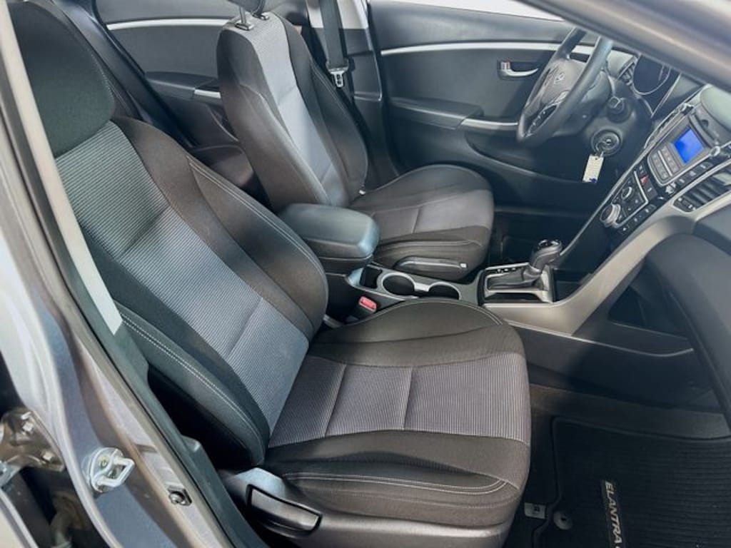 2016 Hyundai Elantra GT Base 2.0L DOHC 6-Speed Automatic with Shiftronic FWD 4D Hatchback Titanium Gray Metallic 16" x 6.5J Steel Wheels w/Covers, 4-Wheel Disc Brakes, 6 Speakers, ABS brakes, Air Conditioning, AM/FM radio, Brake assist, Bumpers: body-color, Cargo Tray, Carpeted Floor Mats, CD player, Delay-off headlights, Driver door bin, Driver vanity mirror, Dual front impact airbags, Dual front side impact airbags, Electronic Stability Control, First Aid Kit, Front anti-roll bar, Front Bucket Seats, Front Center Armrest, Front reading lights, Front wheel independent suspension, Heated door mirrors, Heated Front Bucket Seats, Heated front seats, Illuminated entry, Knee airbag, Low tire pressure warning, Occupant sensing airbag, Option Group 01, Outside temperature display, Overhead airbag, Overhead console, Panic alarm, Passenger door bin, Passenger vanity mirror, Power door mirrors, Power steering, Power windows, Premium Cloth Seating Surfaces, Radio: AM/FM/SiriusXM/CD/MP3 Audio System, Rear anti-roll bar, Rear reading lights, Rear seat center armrest, Rear window defroster, Rear window wiper, Remote keyless entry, Security system, Speed control, Speed-sensing steering, Split folding rear seat, Spoiler, Steering wheel mounted audio controls, Tachometer, Telescoping steering wheel, Tilt steering wheel, Traction control, Trip computer, Variably intermittent wipers.