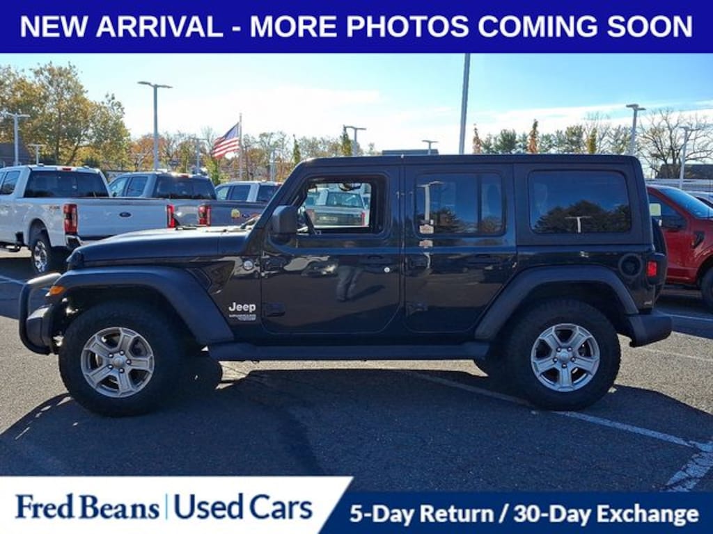 Recent Arrival! 2019 Jeep Wrangler Unlimited Sport S 2.0L I4 DOHC 8-Speed Automatic 4D Sport Utility Black Clearcoat Local Trade, Great Service History, Free First Oil Change, 5 Day Return / 30 Day Exchange, Auto Reward Program, Wrangler Unlimited Sport S, 4D Sport Utility, 2.0L I4 DOHC, 8-Speed Automatic, 4WD, Black Clearcoat, Black Cloth, Automatic Headlamps, Deep Tint Sunscreen Windows, Front 1-Touch Down Power Windows, Leather Wrapped Steering Wheel, Power Heated Mirrors, Quick Order Package 28S Sport S, Remote Keyless Entry, Security Alarm, Speed Sensitive Power Locks, Sun Visors w/Illuminated Vanity Mirrors, Wheels: 17" x 7.5" Tech Silver Aluminum.