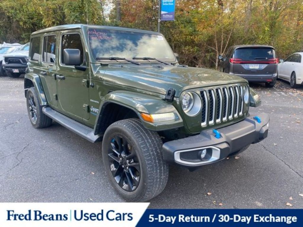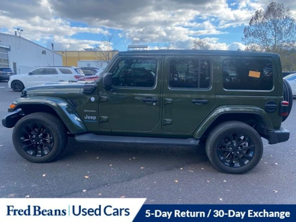 Recent Arrival! 2023 Jeep Wrangler Sahara 4xe 2.0L I4 DOHC 8-Speed Automatic 4WD 4D Sport Utility Sarge Green Clearcoat Great Service History, Free First Oil Change, 2.0L I4 DOHC, Apple CarPlay/Android Auto, Power Top Quarter Window Storage Bag, Removable Rear Quarter Windows, Sky 1-Touch Power Top.