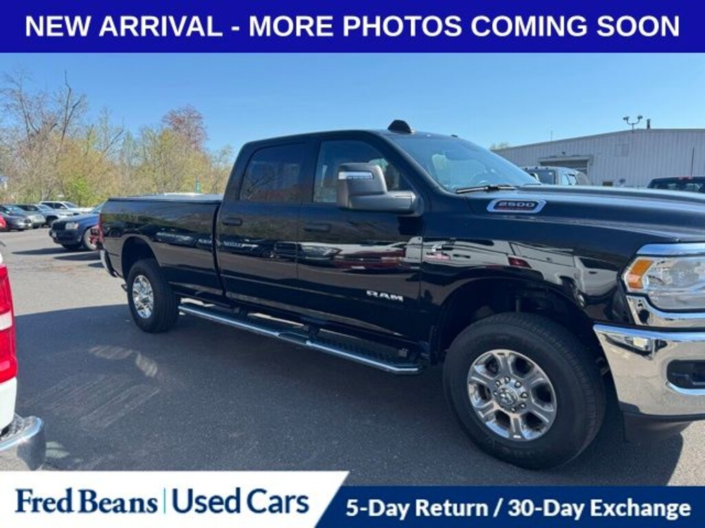 Recent Arrival! 2024 Ram 2500 Big Horn Cummins 6.7L I6 Turbodiesel 6-Speed Automatic 4WD 4D Crew Cab Diamond Black Crystal Pearlcoat 115V Auxiliary Front Power Outlet, 2nd Row In Floor Storage Bins, Apple CarPlay, Auto Power-Folding Mirrors, Big Horn IP Badge, Black Exterior Mirrors, Blind Spot & Cross Path Detection, Center Hub, Cluster 7.0" TFT Color Display, Dampened Tailgate, Dual Glove Boxes, Exterior Mirrors Courtesy Lamps, Exterior Mirrors w/Heating Element, Exterior Mirrors w/Supplemental Signals, Foam Bottle Insert (Door Trim Panel), Footwell Courtesy Lamp, Forward & Reverse Utility Lights, Front Fog Lamps, Glove Box Lamp, GPS Navigation, Heated Front Seats, Heated Steering Wheel, Leather Wrapped Steering Wheel, Level 2 Equipment Group, Locking Lower Glove Box, Media Hub w/2 Charge Only USBs, Mirror Running Lights, ParkSense Front/Rear Park Assist System, Power Adjust Mirrors, Power Adjustable Convex Aux Mirrors, Power Adjustable Pedals, Power Heated Fold Telescope Mirrors, Power Telescoping Mirrors, Premium Cloth 40/20/40 Bench Seat, Quick Order Package 2HZ Big Horn, Radio: Uconnect 5 Nav w/12.0" Display, Rear Dome w/On/Off Switch Lamp, Rear Power Sliding Window, Rear Window Defroster, Remote Start System, Security Alarm, Steering Wheel Mounted Audio Controls, Sun Visors w/Illuminated Vanity Mirrors, Universal Garage Door Opener, Wheels: 18" x 8.0" Polished Aluminum.