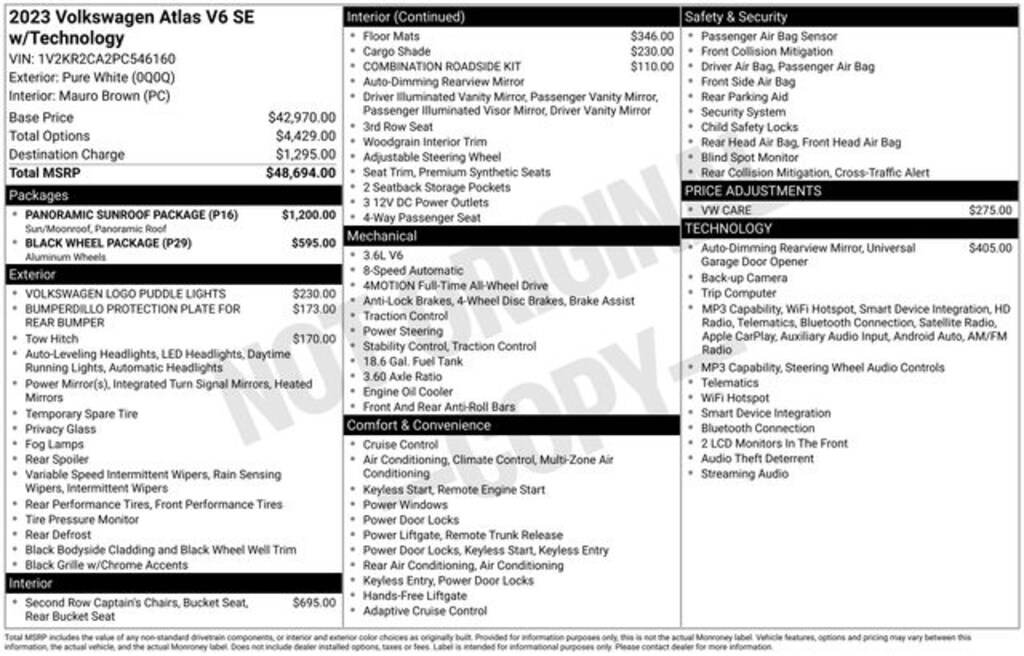 2023 Volkswagen Atlas 3.6L V6 SE w/Technology 3.6L VR6 8-Speed Automatic with Tiptronic AWD 4D Sport Utility Pure White Great Service History, Remainder of Factory Warranty, Factory Certified Vehicle, Auto Reward Program.