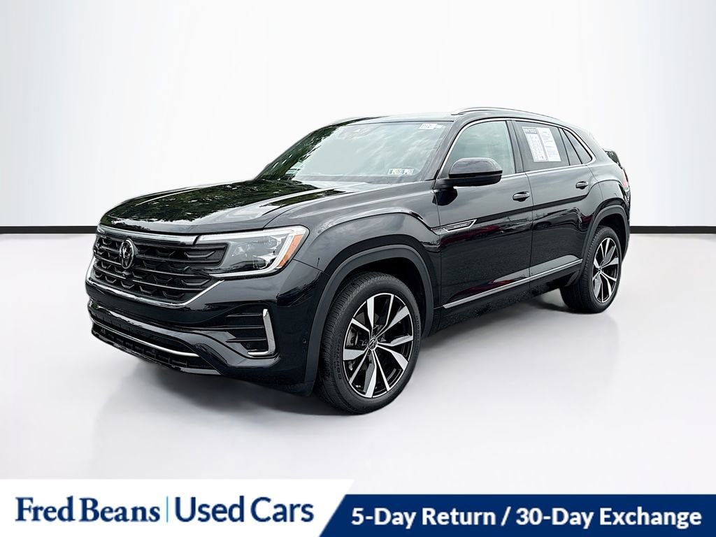 CARFAX One-Owner. Clean CARFAX.2024 Volkswagen Atlas Cross Sport 2.0T SEL Premium R-Line 2.0L TSI AWD 8-Speed Automatic with Tiptronic Deep Black PearlFor better peace of mind all our used vehicles have a 127-point inspection and come with a 5-day return, 30-day exchange (As-Is vehicles are excluded). Our exclusive Auto Rewards Program provides better value with Free First Oil change, Free Pa State Safety inspections, discounts for local merchants and more. Plus, you can earn up to $2000 towards your next vehicle just by servicing with Fred Beans! As Fred Beans always says, our used cars are better because our reputation depends on it.3.60 Axle Ratio, 4-Wheel Disc Brakes, 4-Wheel Independent Suspension, 6 Speakers, ABS brakes, Air Conditioning, Alloy wheels, AM/FM radio: SiriusXM with 360L, Auto High-beam Headlights, Auto-dimming Rear-View mirror, Automatic temperature control, Brake assist, Bumpers: body-color, Compass, Delay-off headlights, Driver door bin, Driver vanity mirror, Dual front impact airbags, Dual front side impact airbags, Electronic Stability Control, Emergency communication system: VW Car-Net Safe & Secure 5-year, Exterior Parking Camera Rear, Four wheel independent suspension, Front anti-roll bar, Front Bucket Seats, Front Center Armrest, Front dual zone A/C, Front fog lights, Front reading lights, Fully automatic headlights, harman/kardon® Speakers, Heads-Up Display, Heated & Actively Ventilated Front Seats, Heated door mirrors, Heated front seats, Heated rear seats, Heated steering wheel, Illuminated entry, Leather steering wheel, Low tire pressure warning, Memory seat, Navigation System, Occupant sensing airbag, Outside temperature display, Overhead airbag, Overhead console, Panic alarm, Passenger door bin, Passenger vanity mirror, Perforated Vienna Leather Seating Surfaces, Power door mirrors, Power driver seat, Power Liftgate, Power moonroof: Panoramic, Power passenger seat, Power steering, Power windows, Radio data system, Radio: MIB3 Discover Media Navigation AM/FM/HD, Rain sensing wipers, Rear anti-roll bar, Rear audio controls, Rear reading lights, Rear seat center armrest, Rear window defroster, Rear window wiper, Remote keyless entry, Security system, Speed control, Speed-sensing steering, Split folding rear seat, Spoiler, Sport steering wheel, Steering wheel mounted audio controls, Tachometer, Telescoping steering wheel, Tilt steering wheel, Traction control, Trip computer, Turn signal indicator mirrors, Variably intermittent wipers, Ventilated front seats, Wheels: 21 2-Tone Machined Alloy.19/26 City/Highway MPGLooking for reliable pre-owned cars in Mechanicsburg? Fred Beans Buick GMC offers a wide selection of high-quality, affordable used cars, SUVs, and trucks perfect for any budget. Each certified pre-owned vehicle undergoes rigorous inspection, ensuring you get dependable performance, competitive pricing, and unmatched value. Explore models from Buick, GMC, Hyundai, Honda, Toyota, Ford, and more! With flexible financing options and exclusive offers, Fred Beans Buick GMC makes buying an used car easy and rewarding. Visit us today in Mechanicsburg to test drive and experience the difference. Drive away in a car youâll love! 2024 Volkswagen Atlas Cross Sport 2.0T SEL Premium R-Line