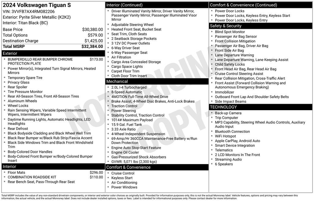 Recent Arrival! 2024 Volkswagen Tiguan 2.0T S 2.0L TSI DOHC 8-Speed Automatic with Tiptronic AWD 4D Sport Utility Pyrite Silver Metallic Great Service History, Remainder of Factory Warranty, Factory Certified Vehicle, Auto Reward Program, AWD.